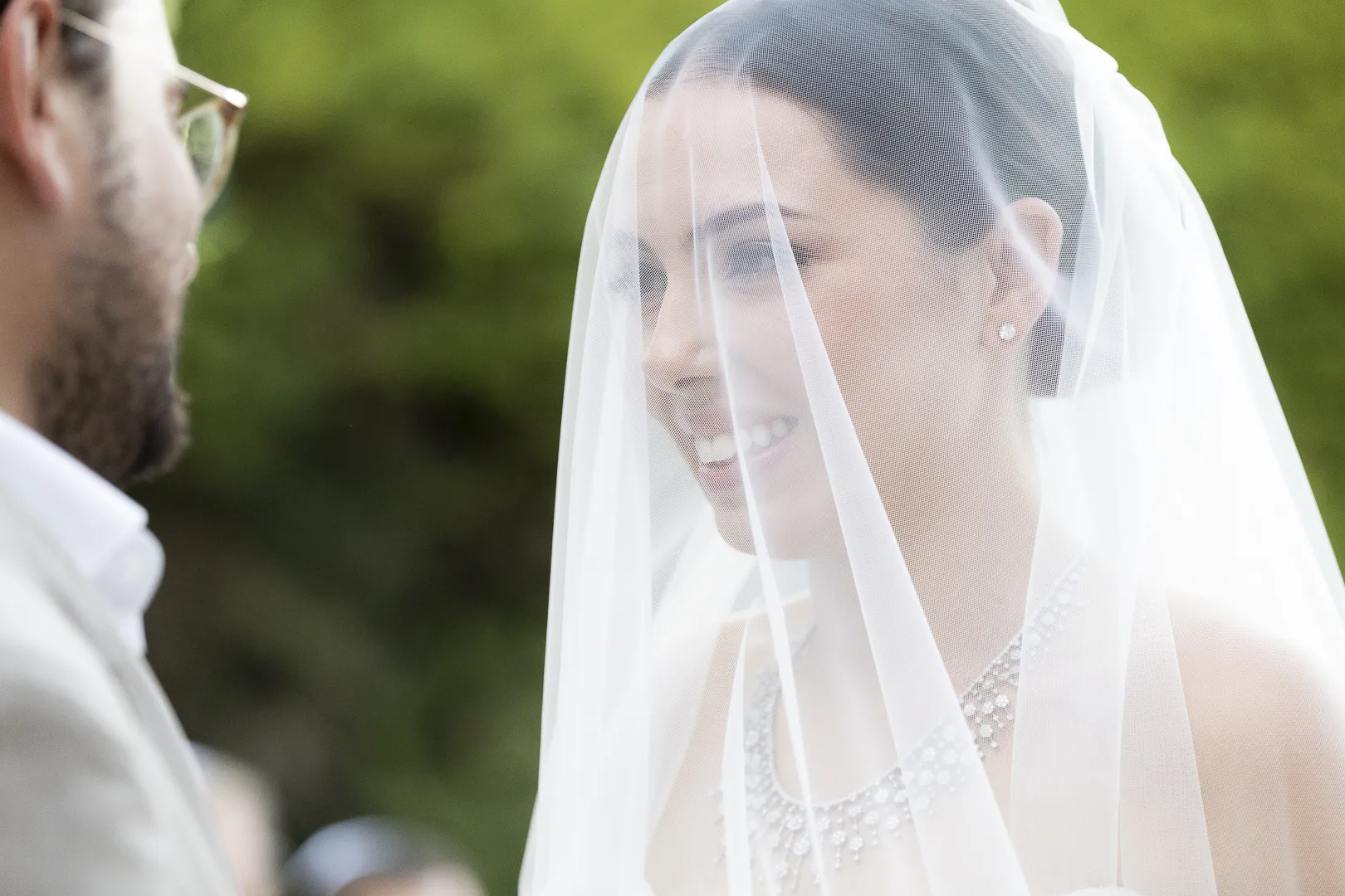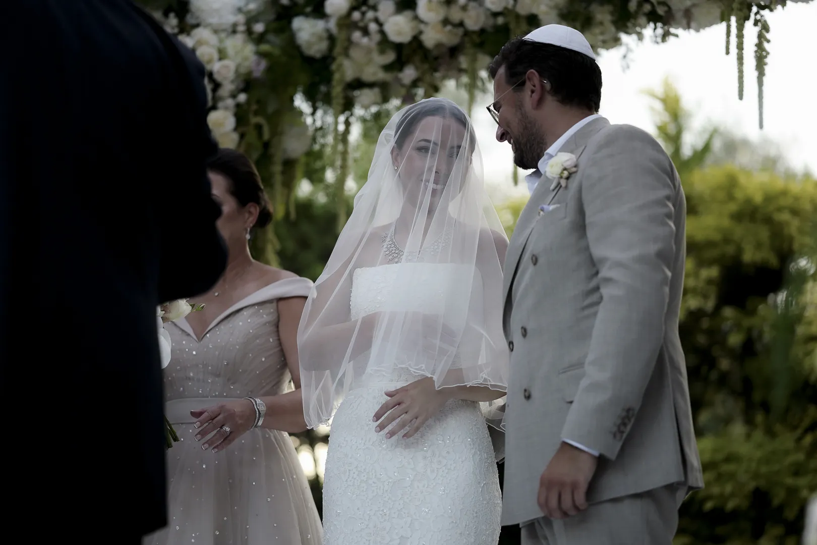 Le futur marié met le voile de prière ou talith sur le visage de la mariée.