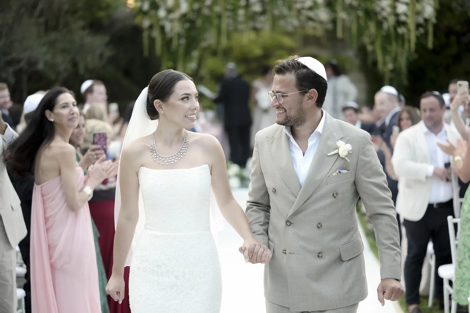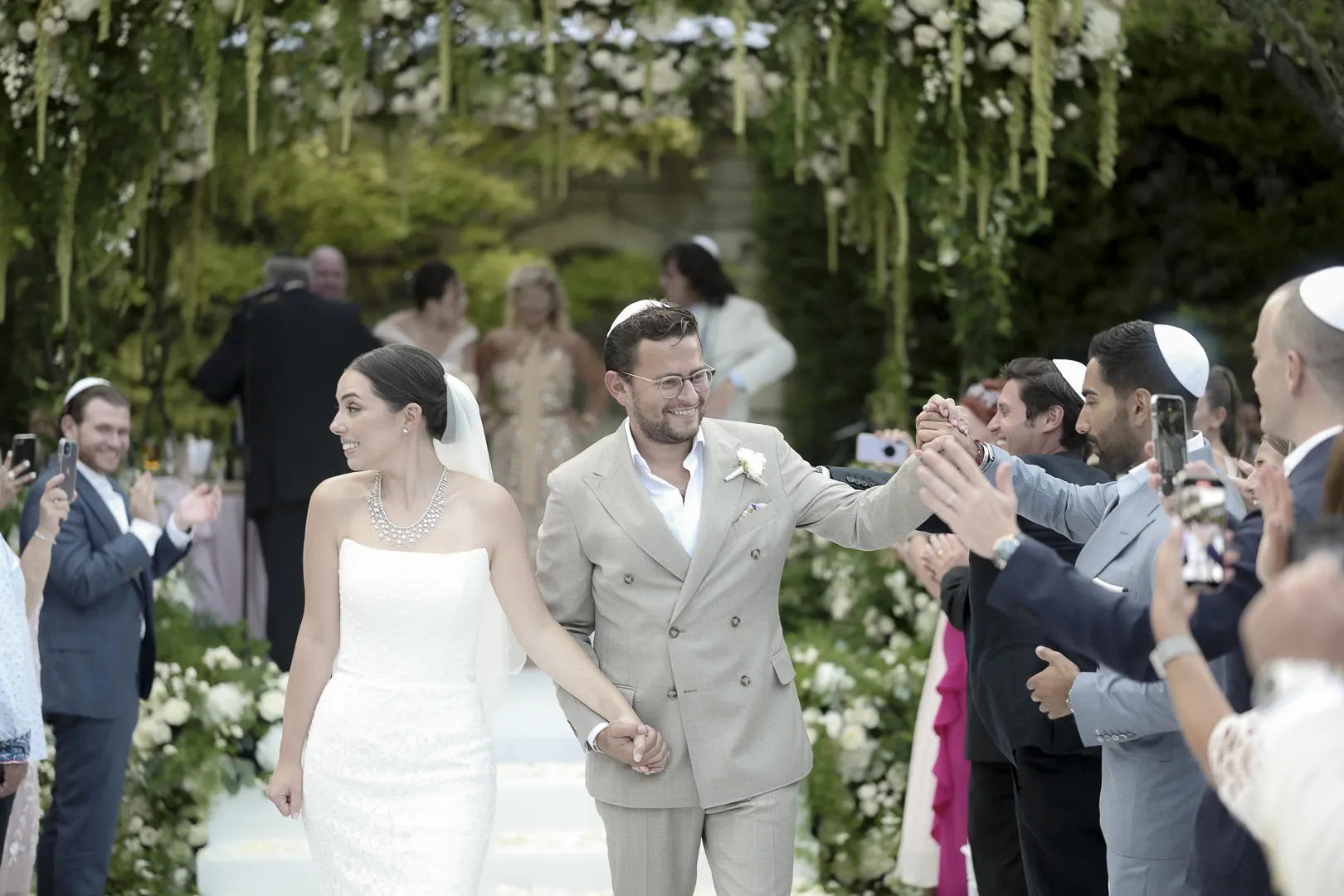 Le couple quitte la houpa avec les acclamations des invités qui crient : « mazel tov ».