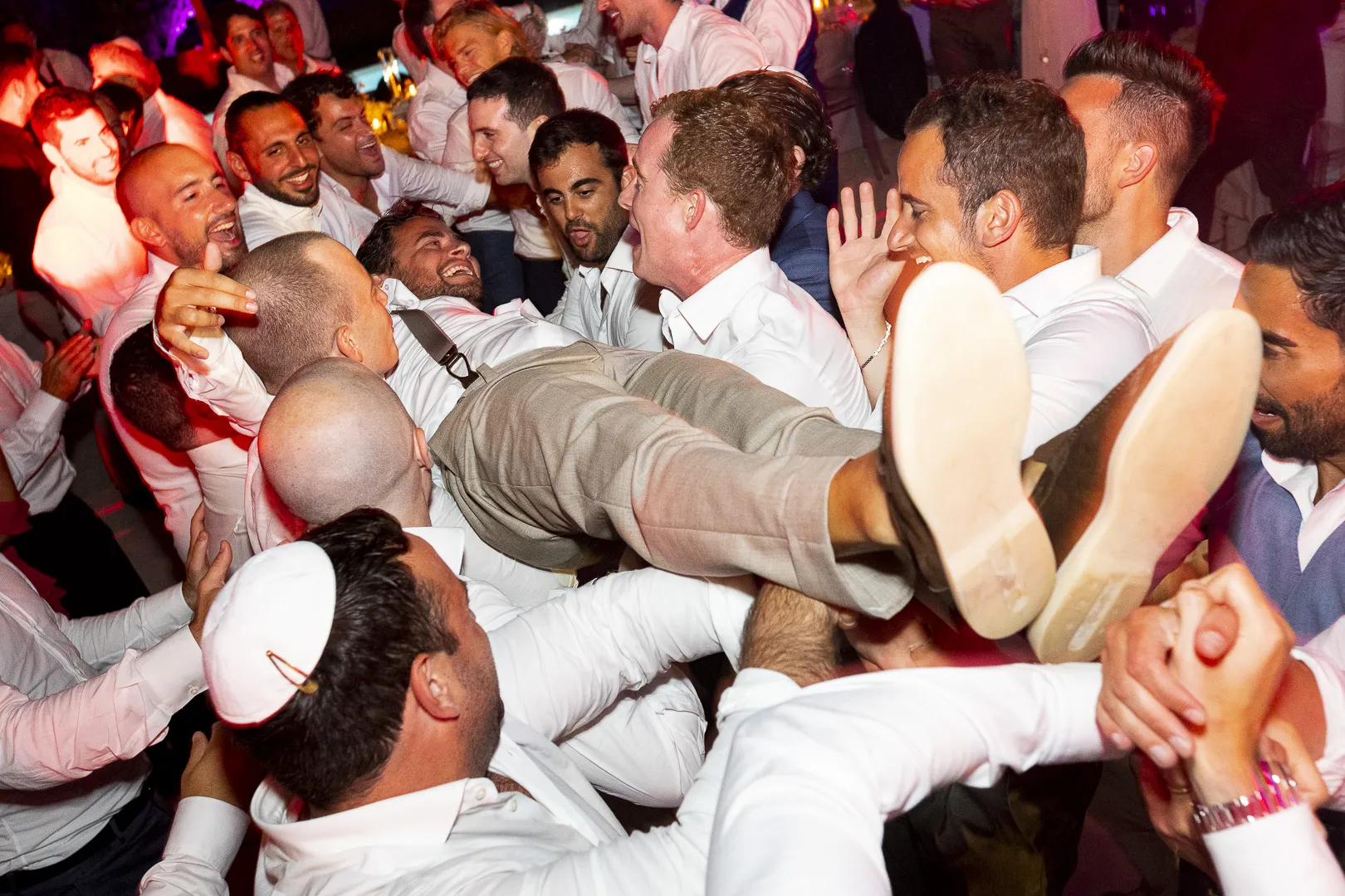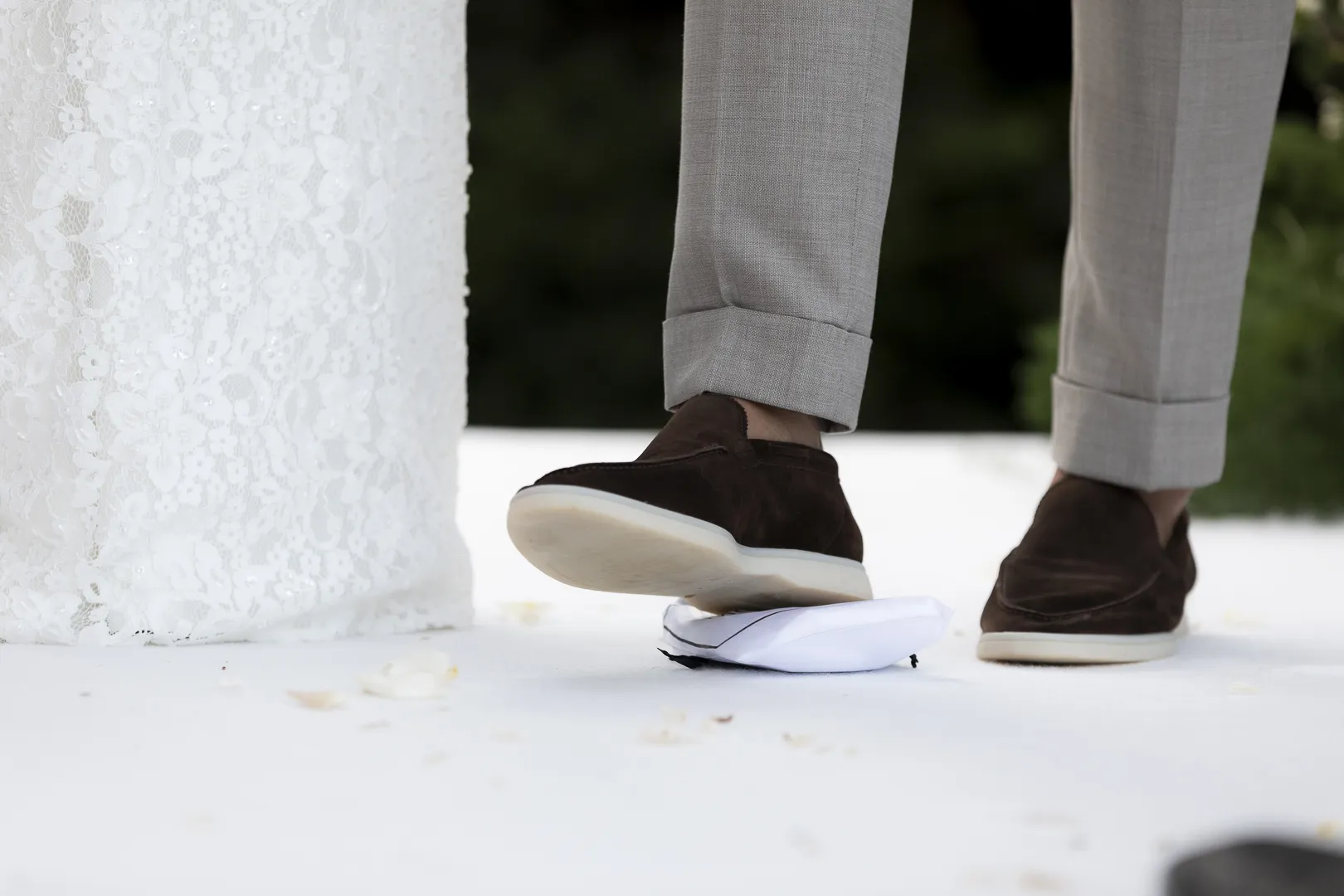 Le marié brise le verre bu avec son pied droit. Ce geste est fait en souvenir de la destruction du temple de Jérusalem. Selon les croyances, plus il y aura d’éclats de verre, mieux le couple se portera.